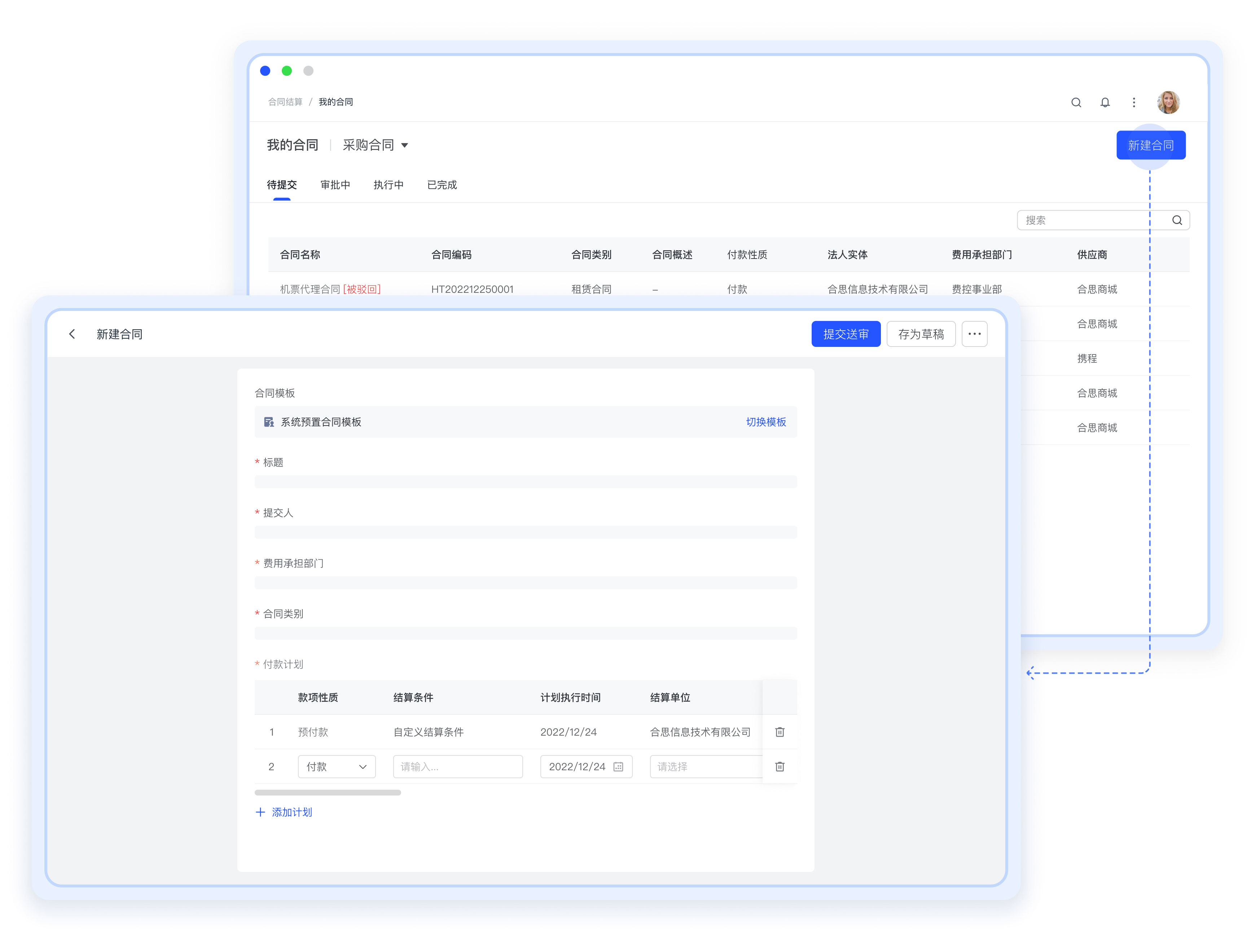 統一集成采購合同、訂單的信息,解決先款后票,先票后款的全場景進項收票,實現供應商一站式的線上對賬。基于“合同管理”和“應付臺賬”合理規劃、執行資金計劃,及時發起對公結算不錯付、不漏付、不多付。在線付款后,多維度的規則引擎自動化完成成本分攤,提升成本精細化核算效率,賦能經營策略制定,推動業務發展。
